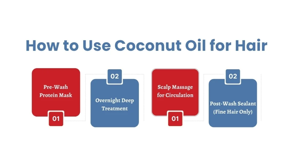 Application method matters as much as the oil itself. The right technique determines whether coconut oil works for or against your hair.